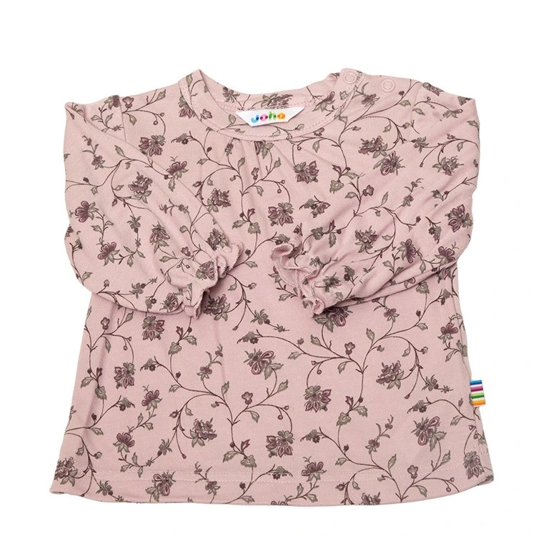 Bluse i sart lyserød økologisk bambus med blomsterprint