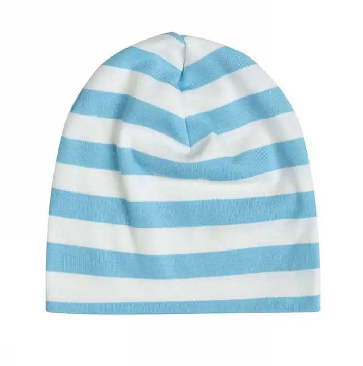 Hue i hvid og blåstribet økologisk bomuld
