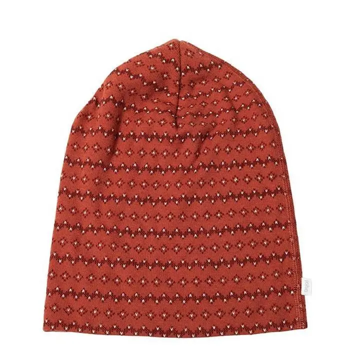Hue i chilirød uld med mønster