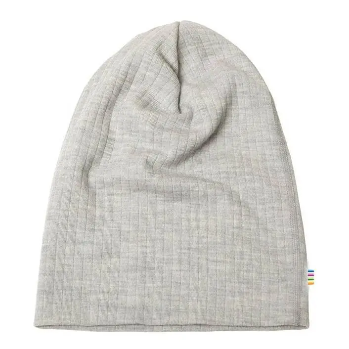 Hue i sølvfarvet rib-uld