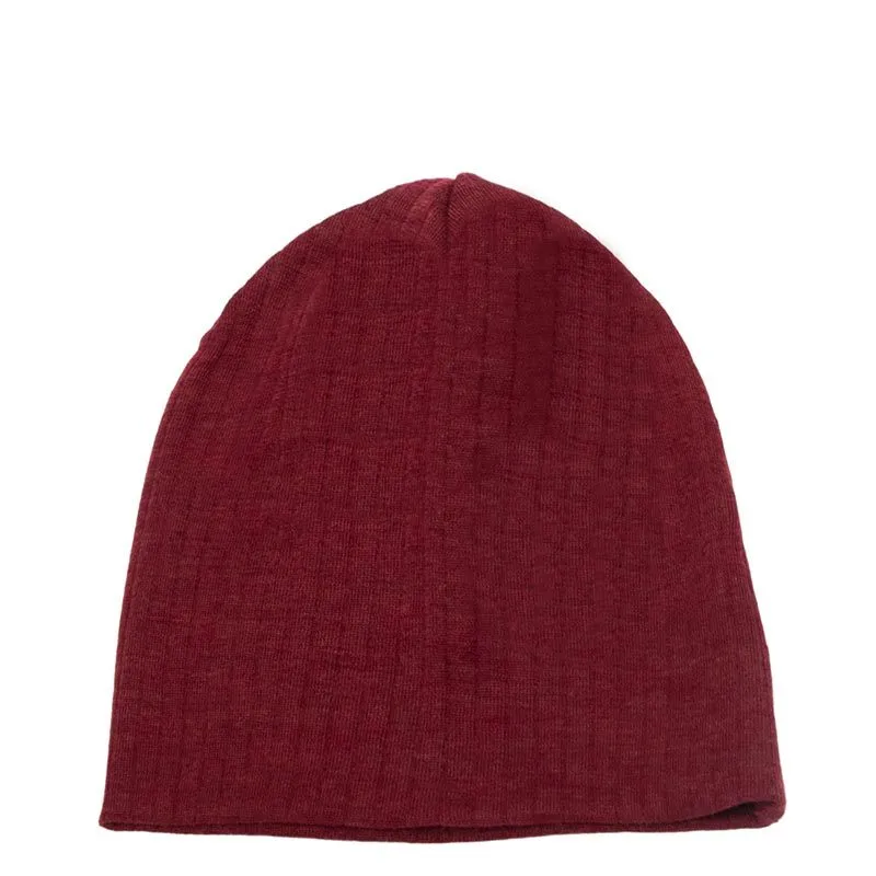 Hue i mørk bordeaux basis 100% merinould - ribform