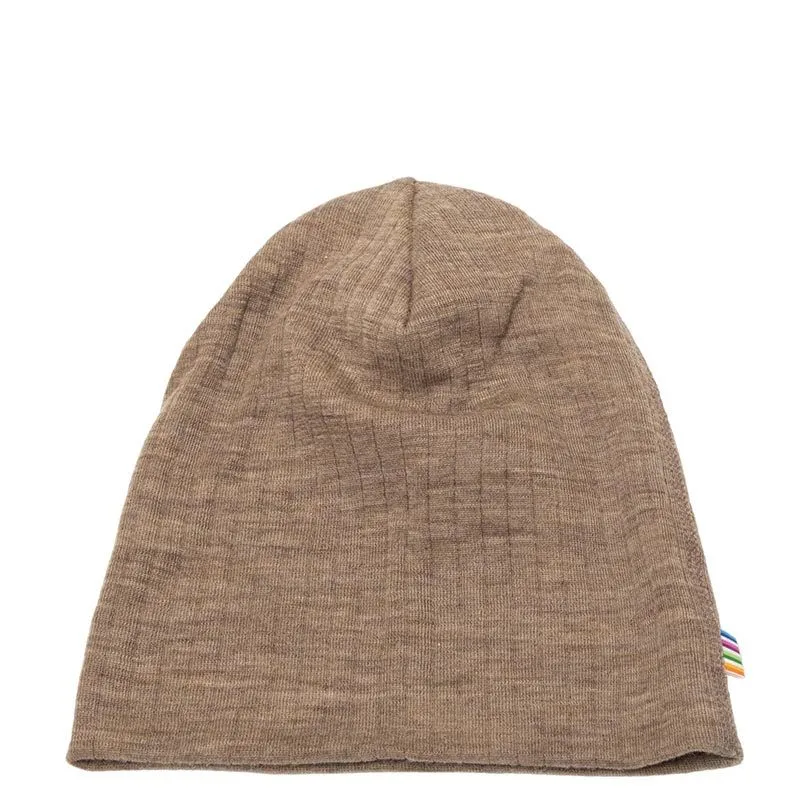 Hue i brun beigefarvet 100% merinould - ribform