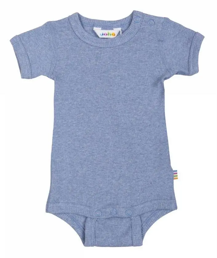 Blåmeleret kortærmet body i rib økologisk bomuld