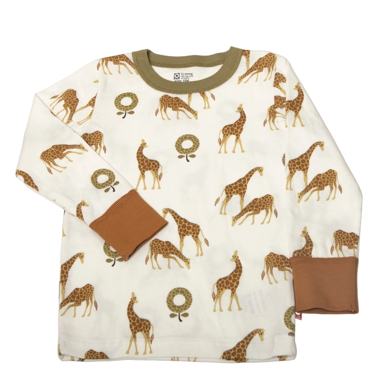 Bluse råhvid med grøn og brun kant og girafprint