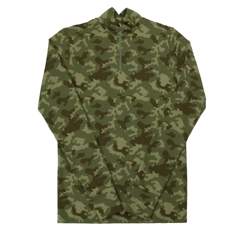 Bluse med lynlås i grøn camouflage med camouflageprint i merinould