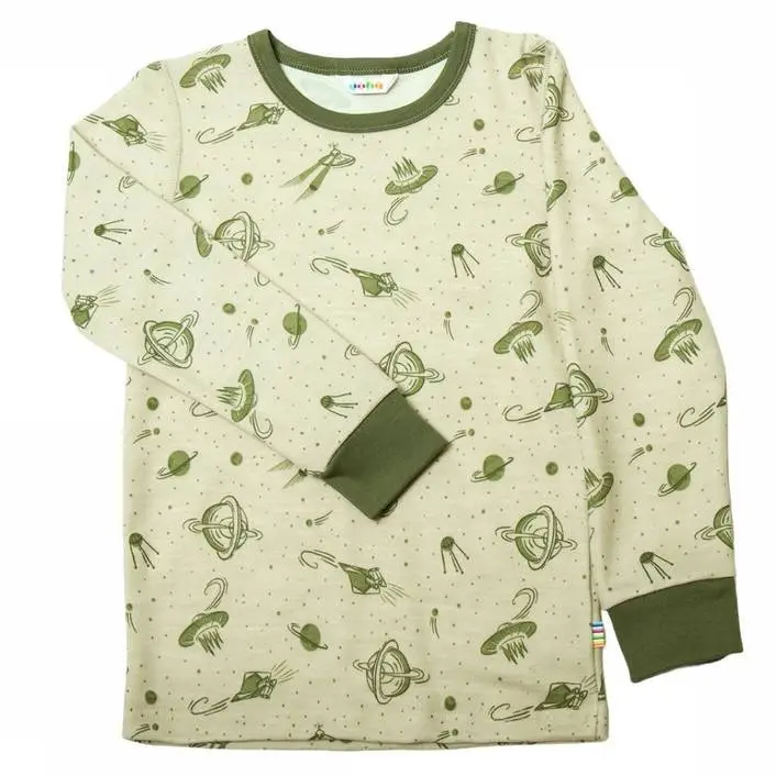 Bluse sand-grøn uld og bambus med UFO print