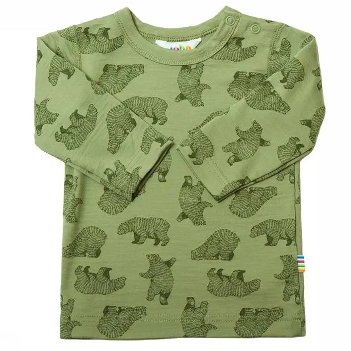 Bluse i grøn ren uld med print af bjørn er lavet af 100% Merino Uld og i farven Salvie AOP. Vi fører et kæmpe udvalg af JOHA. Følgende størrelser er på lager (). Du får FRI FRAGT allerede fra 349,- hos Ugleunger når du handler Bluse fra Joha
