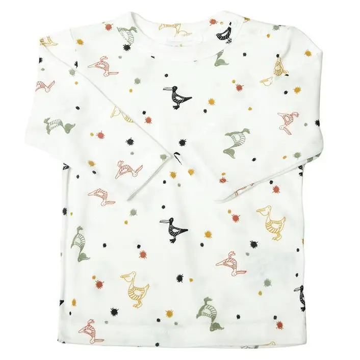 Bluse i råhvid økologisk bambus - Pelikan print