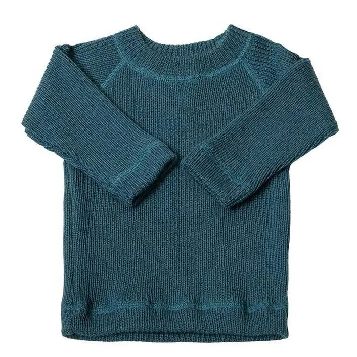 Bluse blå merinould - Wool Rib