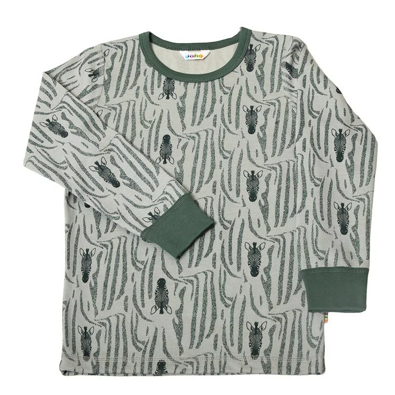 Bluse grøn uld-bomuld med Zebraprint