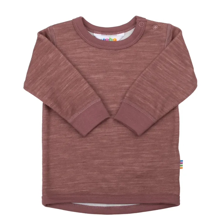 Bluse med lange ærmer i brunmeleret uld/bambusblanding er lavet af 52% Uld med 44% Økologisk Bambus og 4% Polyamid og i farven Mrk.rose. Vi fører et kæmpe udvalg af JOHA. Følgende størrelser er på lager (60, 70, 80, 90, 100, 110, 120). Du får FRI FRAGT allerede fra 349,- hos Ugleunger når du handler Bluse fra JOHA.