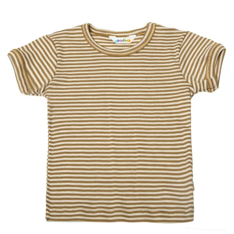 Kortærmet bluse i khaki og hvidstribet uld-silke