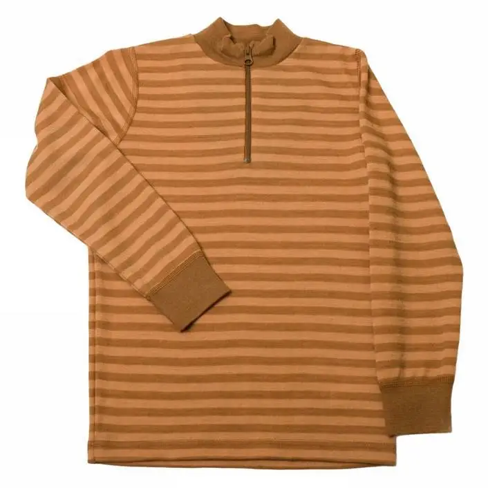 Bluse med lynlås uld i mørk og lyse kobberstriber
