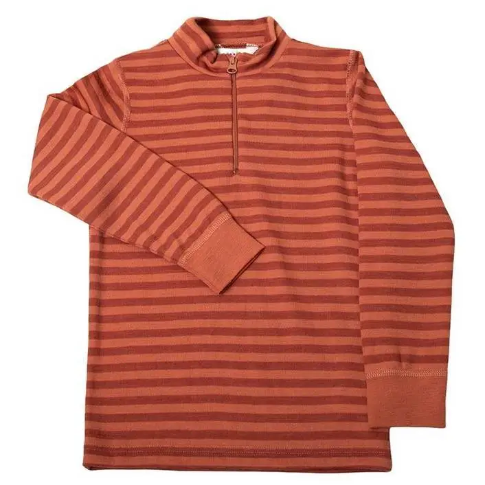 Bluse med lynlås i rødstribet uld