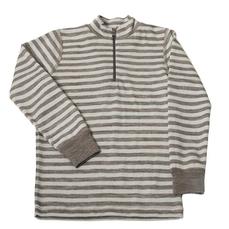 Bluse med lynlås større børn i grøn myntefarvet striber i blød uld
