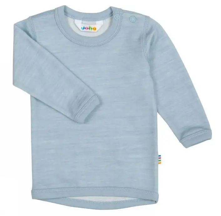 Bluse i støvet blå uld og økologisk bambus