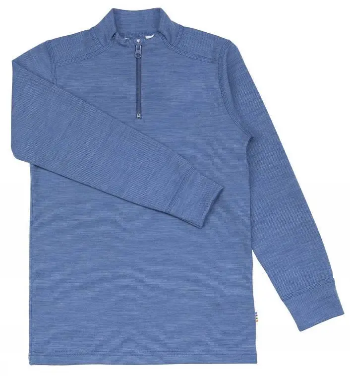 Bluse med lynlås ved hals i blå merinould