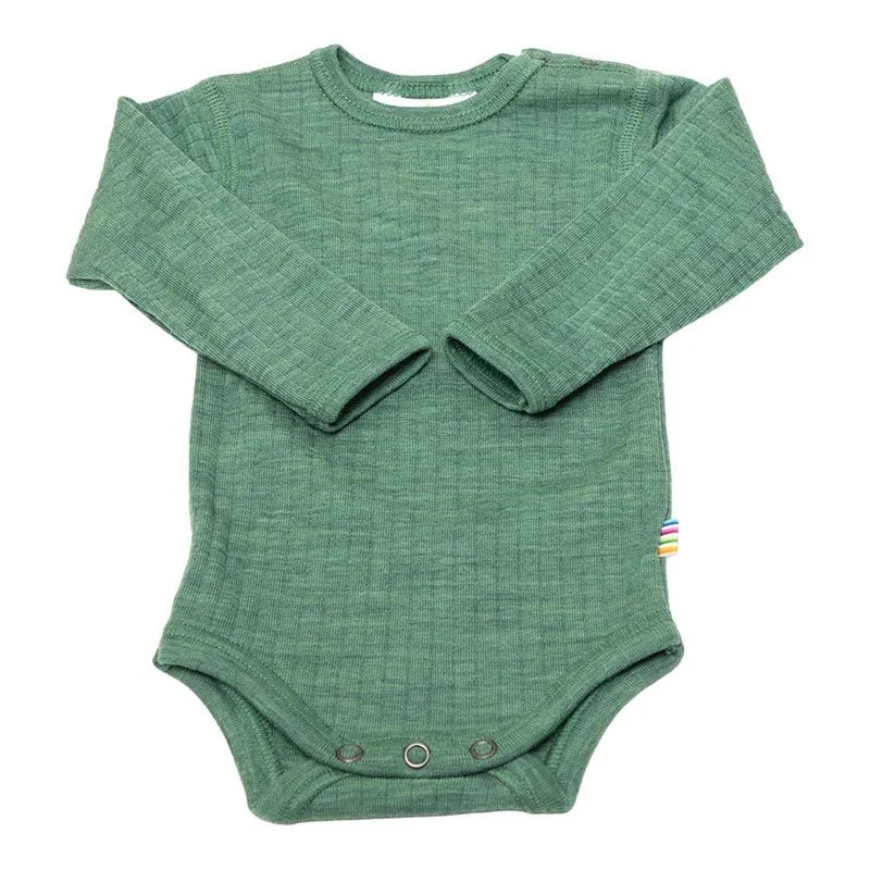 Langærmet body i grøn basis merinould - rib