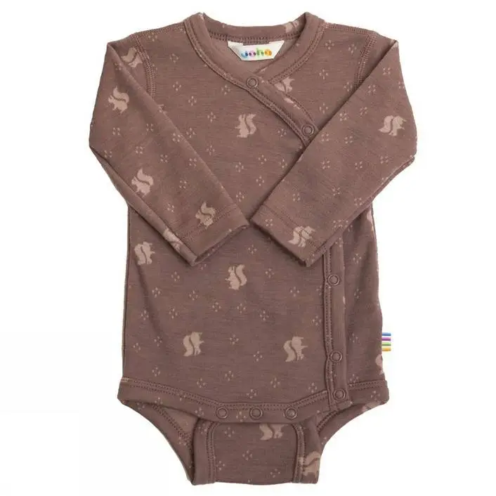 Body med sideluk i 100% uld gammelrosa print af egern