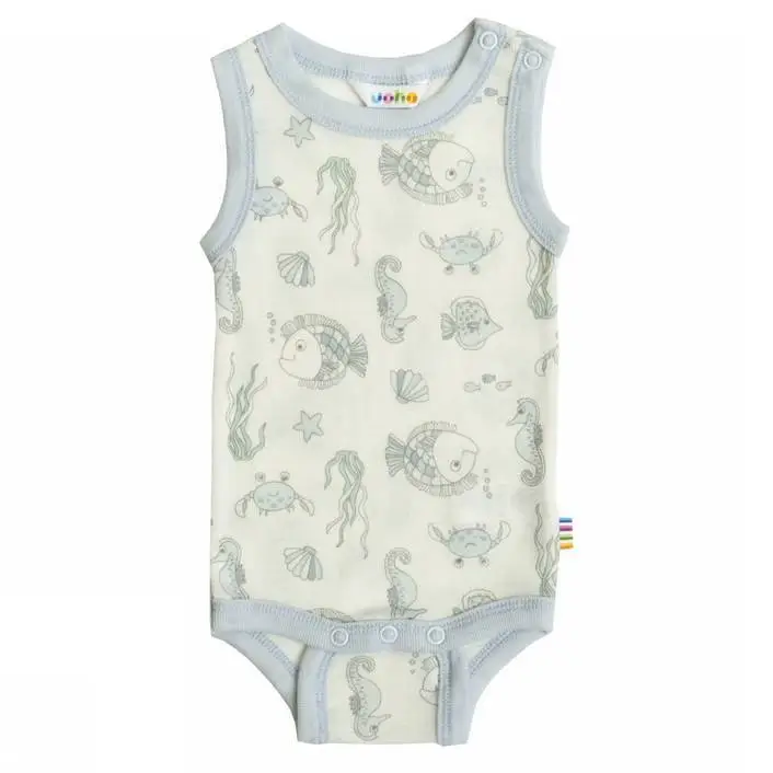 Body uden ærmer creme og lyseblå i sommeruld - SEA LIFE