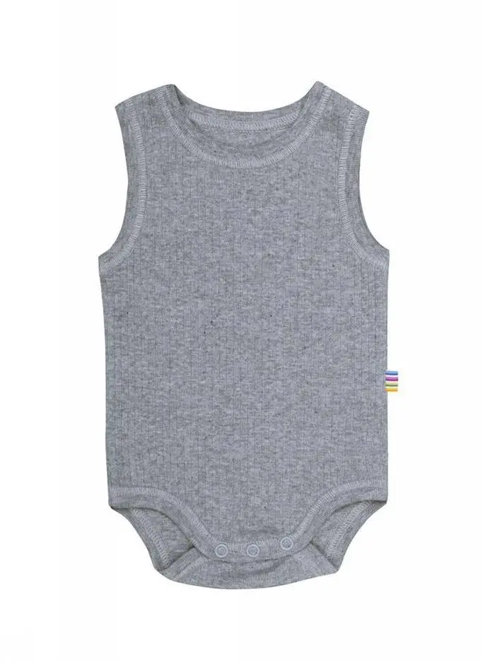 Fin grå bodystocking, uden ærme og med praktiske trykknapper i bodyens bund. Bodyen er produceret i Joha´s bløde bomuldskvalitet og fungerer særligt godt som inderste lag mod barnets hud.