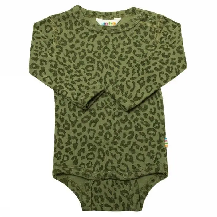 Body mørkegrøn salvie ren uld med leopard mønster