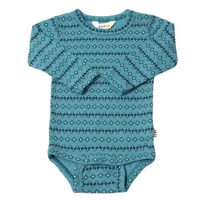 Langærmet body i turkisblå uld med mønster er lavet af 100% Merino Uld og i farven Storm Blue. Vi fører et kæmpe udvalg af JOHA. Følgende størrelser er på lager (). Du får FRI FRAGT allerede fra 349,- hos Ugleunger når du handler Body lang ærme fra Joha