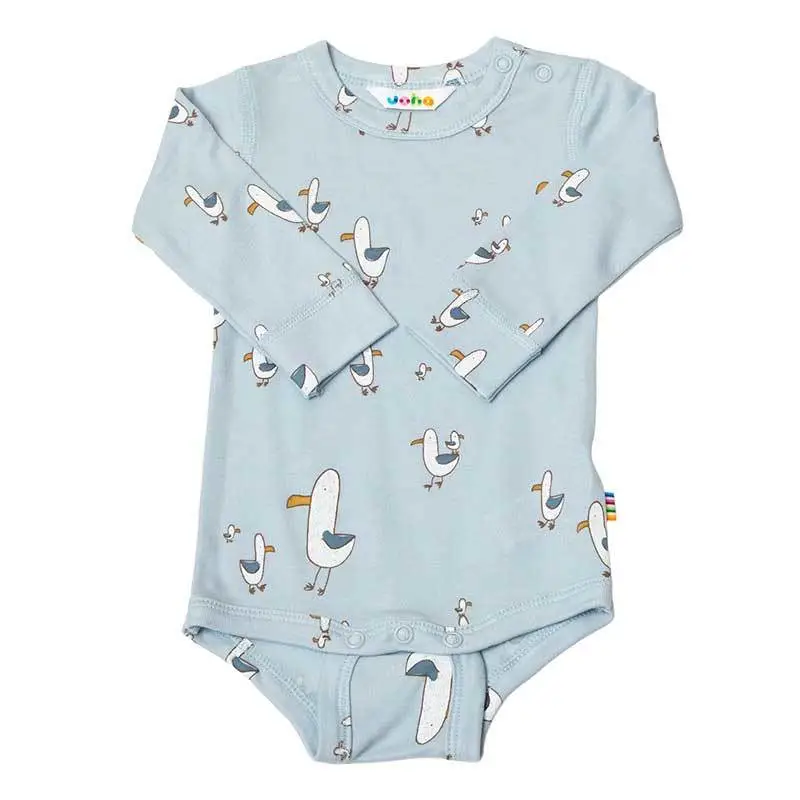 Langærmet body i lyseblå smørblød bambus med print af måge er lavet af 100% Økologisk Bambus og i farven Blå AOP. Vi fører et kæmpe udvalg af JOHA. Følgende størrelser er på lager (). Du får FRI FRAGT allerede fra 349,- hos Ugleunger når du handler Body lang ærme fra Joha