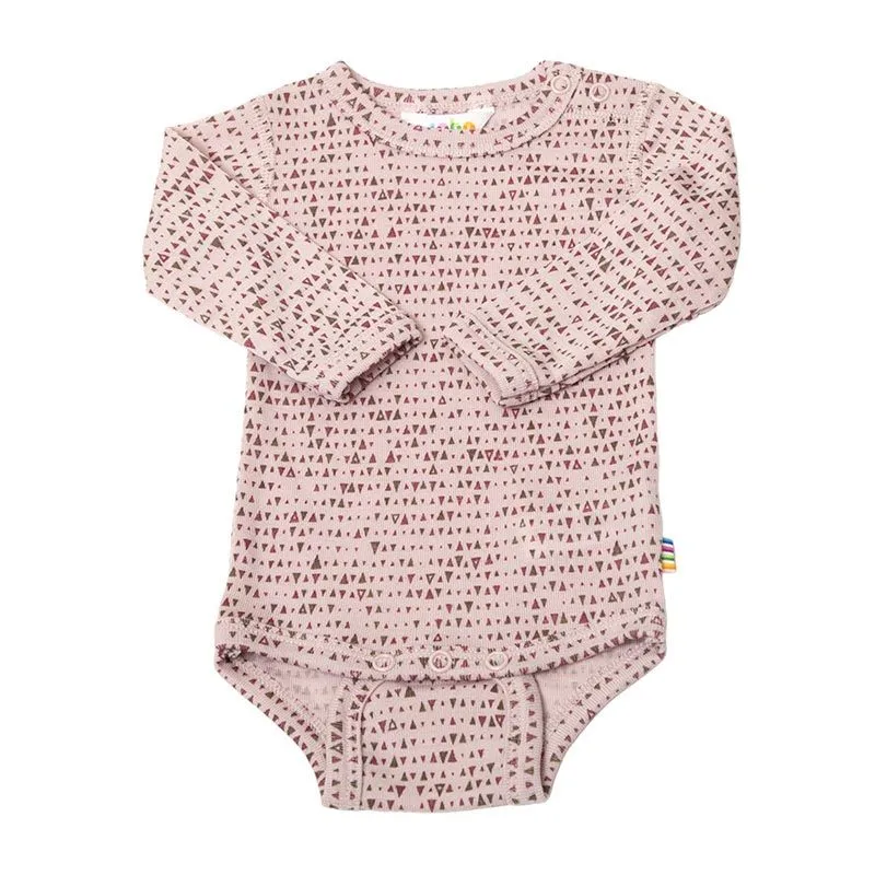 Langærmet body i lyserød 100% uld med trekant mønster