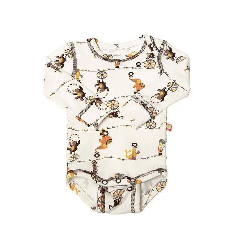Bodystocking råhvid økologisk bambus med cirkusprint