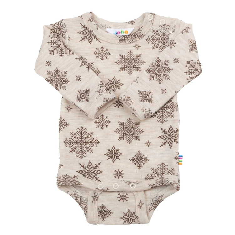 Langærmet body i beige med print af snefug I 100% merinould er lavet af 100% Merino Uld og i farven Beige. Vi fører et kæmpe udvalg af JOHA. Følgende størrelser er på lager (). Du får FRI FRAGT allerede fra 349,- hos Ugleunger når du handler Body lang ærme fra Joha