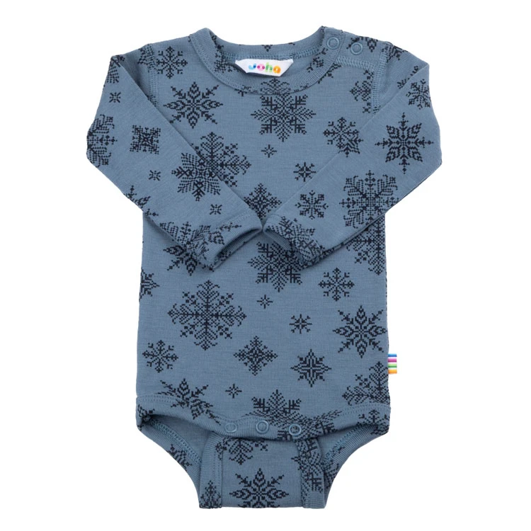 Langærmet body i blå med print af snefug I 100% merinould er lavet af 100% Merino Uld og i farven Blå. Vi fører et kæmpe udvalg af JOHA. Følgende størrelser er på lager (). Du får FRI FRAGT allerede fra 349,- hos Ugleunger når du handler Body lang ærme fra Joha