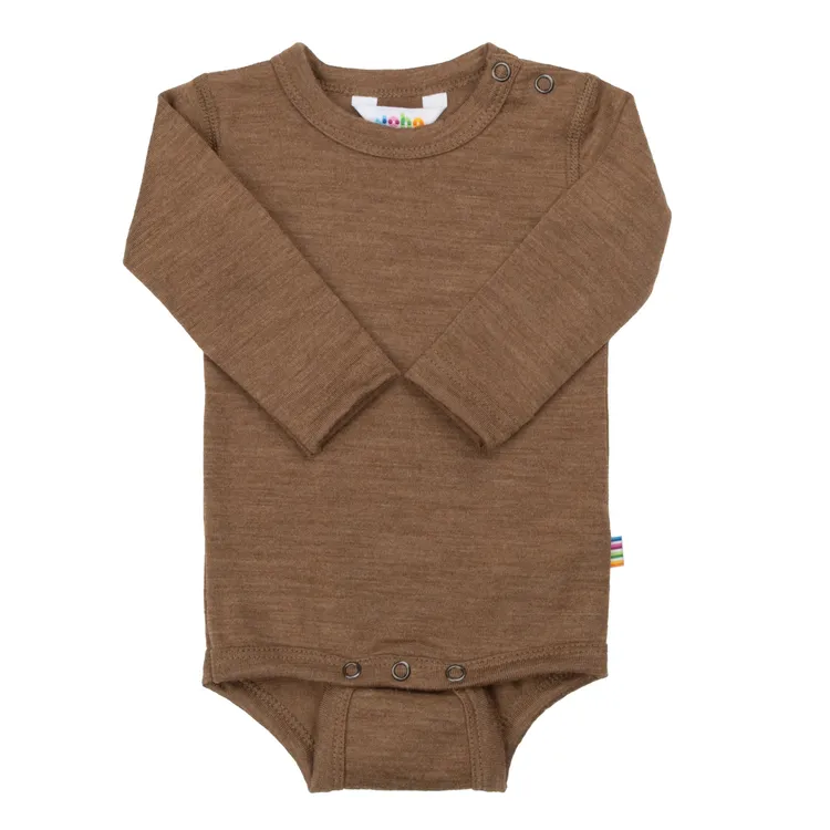 Body med lange ærmer i brunmeleret merinould er lavet af 100% Merino Uld og i farven Varm brun. Vi fører et kæmpe udvalg af JOHA. Følgende størrelser er på lager (60, 70, 80, 90). Du får FRI FRAGT allerede fra 349,- hos Ugleunger når du handler Body lang ærme fra JOHA.