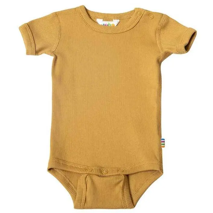 Kortærmet body mørk sennepsfarvet økologisk bomuld