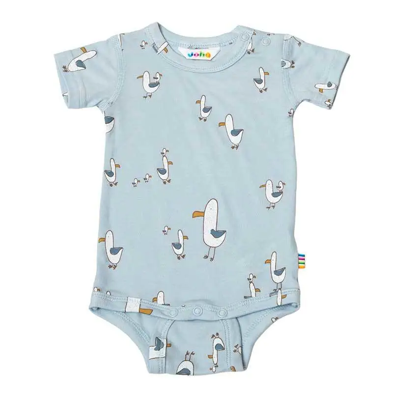 Kortærmet body i lyseblå smørblød bambus med print af måge er lavet af 100% Økologisk Bambus og i farven Blå AOP. Vi fører et kæmpe udvalg af JOHA. Følgende størrelser er på lager (). Du får FRI FRAGT allerede fra 349,- hos Ugleunger når du handler Body kort ærme fra Joha