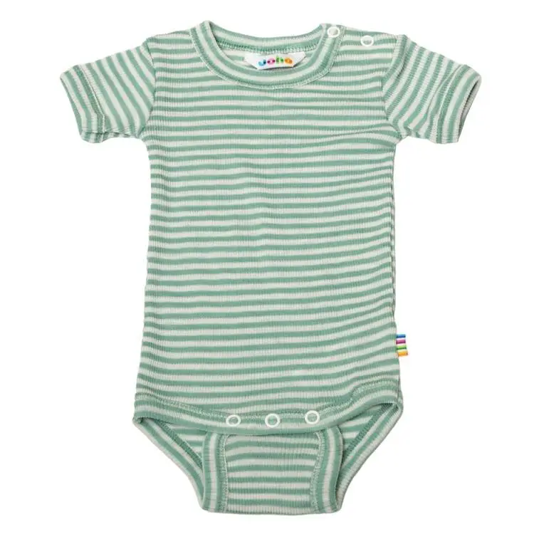 Kortærmet body i grøn og hvid stribet uld-silke er lavet af 85% Uld og 15% Silke og i farven Grøn. Vi fører et kæmpe udvalg af JOHA. Følgende størrelser er på lager (). Du får FRI FRAGT allerede fra 349,- hos Ugleunger når du handler Body kort ærme fra Joha