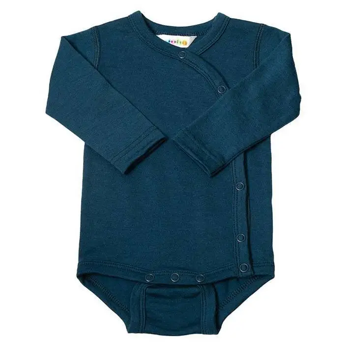 Dette Body med sideluk i mørk-blå enkeltlags uld fra mærket Joha er det perfekte valg til din lille baby. Bodyen er lavet af 100% Merino uld, som er et dynamisk materiale, der hjælper med at regulere kroppens temperatur og holder din baby varm og behagelig.