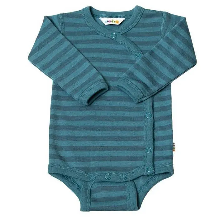 Denne lækre blåstribede body fra Joha er perfekt til din lille baby. Den er lavet af en dynamisk blanding af 95% uld og 5% polyamid, hvilket giver den optimal komfort og bevægelsesfrihed. Uldmaterialet er naturligt åndbart og temperaturregulerende, så din baby holdes varm og tør hele dagen.