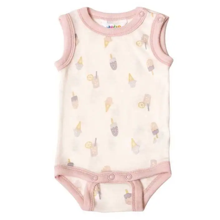 Body uden ærmer hvid og sart rosa sommeruld - Ice Cream Print