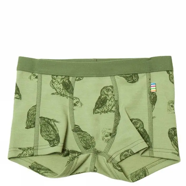 Boxershort i grøn uld-bomuldmed ugleprint