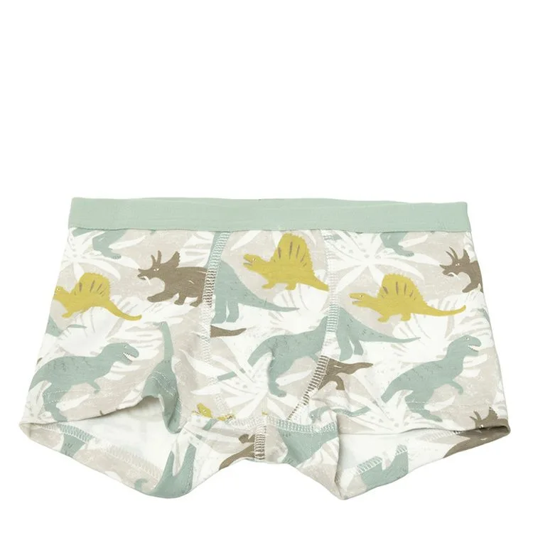 Boxershorts i sart lysegrøn økologisk bomuld med dinosaurprint