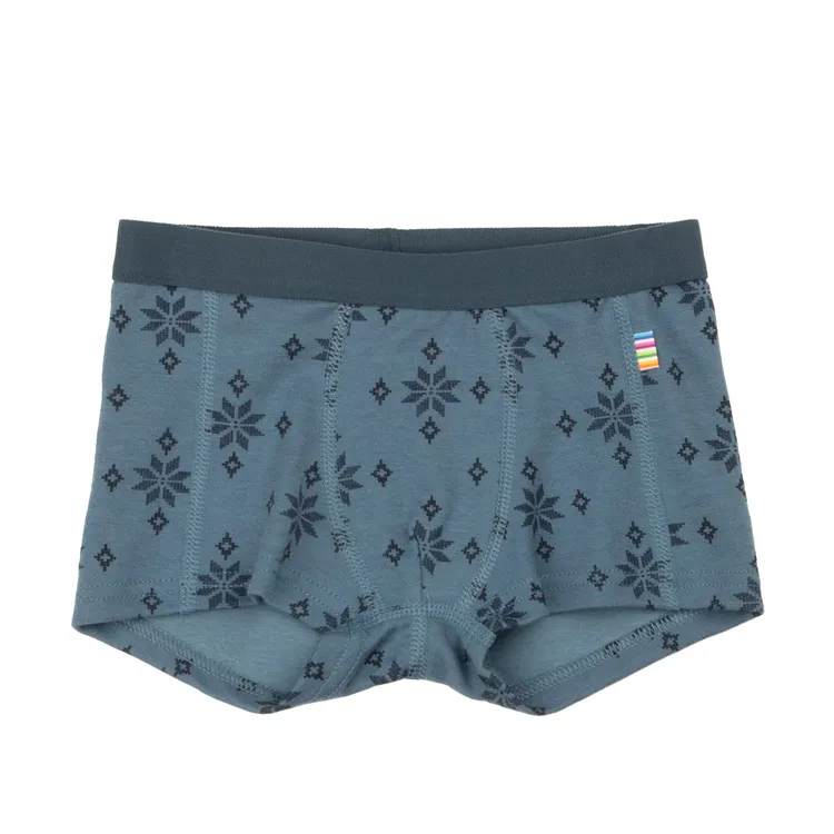 Boxershorts i blåmeleret merinould og økologisk bomuld