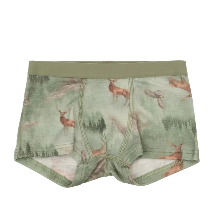 Boxershorts i støvet grøn merinould med naturprint