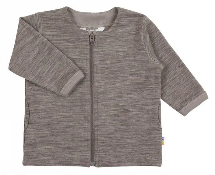 Du får her en skøn cardigan med nem lynlås og smarte lommer i siderne. Den bruge cardigan er lavet i dejlig uld-bomuld og læg mærke til kanten ved halsen der på ingen måde kradser, men istedet for giver en blød afrunding. Dit barn kan føle sig fuldstændig godt tilpas i leg, sjov og ballade. Den matcher godt med hvide bukser eller leggings samt støvet lilla og blå.