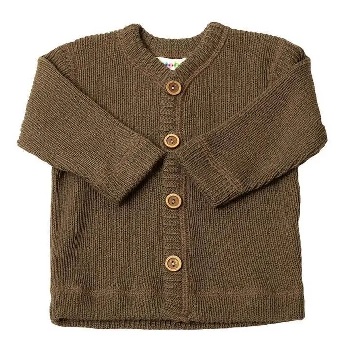 Cardigan mørk Beige med knapper i merinould - Wool Rib