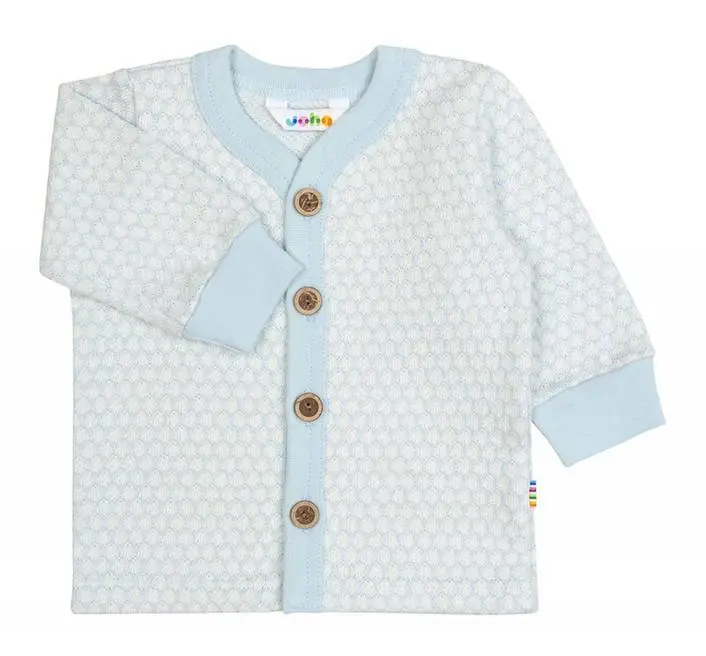 Cardigan i lyseblå økologisk bomuld med hvidt mønster er lavet af 100% Økologisk bomuld og i farven Circle B. Vi fører et kæmpe udvalg af JOHA. Følgende størrelser er på lager (). Du får FRI FRAGT allerede fra 349,- hos Ugleunger når du handler Cardigan fra Joha