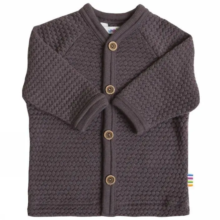 Cardigan mørk lilla uld - bubble knitting