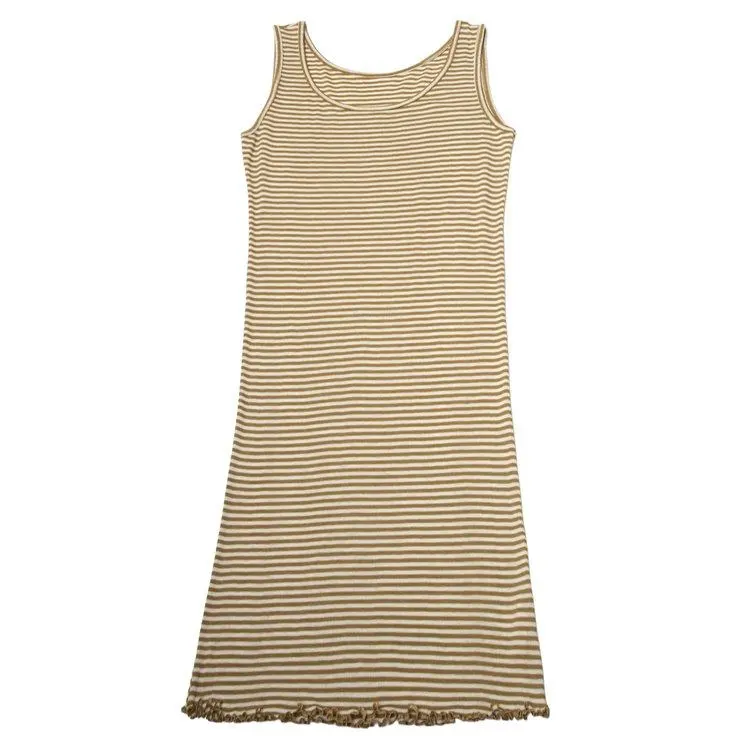 Kjole i khaki og hvidstribet uld-silke