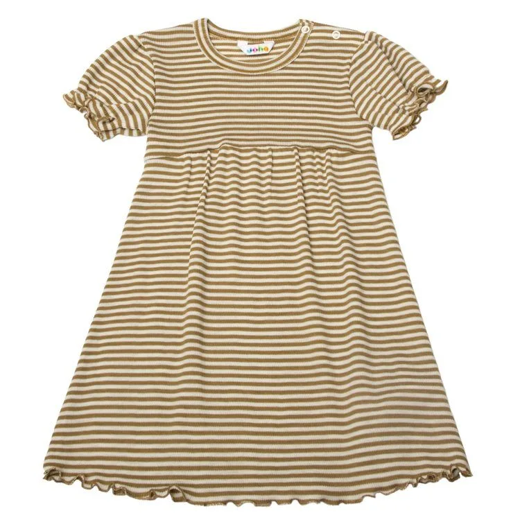 Kjole i khaki og hvidstribet uld-silke er lavet af 85% Uld og 15% Silke og i farven Khaki. Vi fører et kæmpe udvalg af JOHA. Følgende størrelser er på lager (). Du får FRI FRAGT allerede fra 349,- hos Ugleunger når du handler Kjole fra JOHA.
