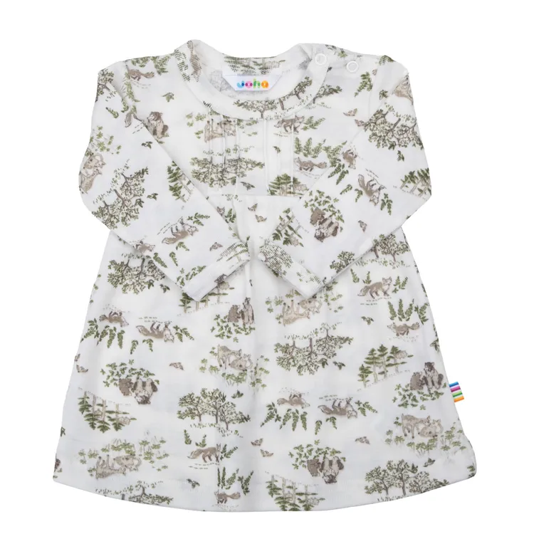 Kjole i grønmeleret uld og silke med naturmotiv er lavet af 85% Uld og 15% Silke og i farven Off white. Vi fører et kæmpe udvalg af JOHA. Følgende størrelser er på lager (60, 70, 80, 90, 100, 110, 120). Du får FRI FRAGT allerede fra 349,- hos Ugleunger når du handler Kjole fra JOHA.